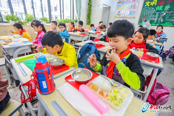“开饭了!”昨日11:30,晋江第二实验小学晓聪校区校园里弥漫着饭菜的香味。各班学生到班级门口有序排队领取午餐,打开一看,鲜虾、马铃薯炒肉、包菜、蒸蛋……饭菜不仅热腾腾而且挺丰盛——两荤两素一汤。坐在宽敞明亮的教室里,孩子们津津有味地吃起了午餐,眼里尽是满意和喜欢。
