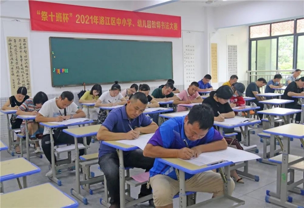为庆祝中国共产党百年华诞,传承中华优秀文化,进一步推动洛江书法教育事业发展,6月23日,洛江举办“祭十班杯”2021年中小学、幼儿园教师书法大赛,全区近百名中小学、幼儿园教师参赛。