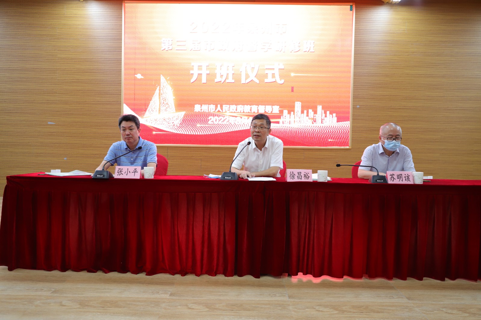 8月10日-12日,2022年泉州市第三届市政府督学研修班在聚龙外国语学校举办。国家特约教育督导员、泉州市委教育工委委员、泉州市人民政府教育督导室主任徐昌裕出席并讲话。省政府特约督学、泉州市人民政府教育督导室副主任张小平主持开班仪式。