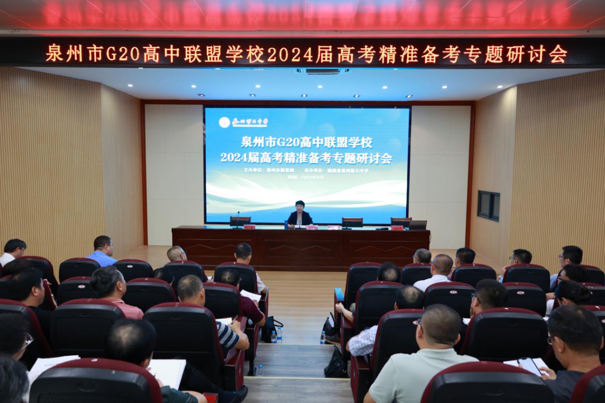 为深入贯彻落实党的二十大精神,做深做实第二批主题教育工作,大力弘扬教育家精神,9月25日下午,泉州市教育局在泉州第五中学召开泉州市G20高中联盟学校2024届高考精准备考专题研讨会。市委教育工委书记、市教育局局长刘殊芳,市委教育工委委员、市人民政府教育督导室主任徐昌裕,市教育局四级调研员蔡玉霖,市教科所所长汤向明,中教科科长张少杰,以及我市各县(市、区)教育局局长、分管副局长、中教负责人,23所G20高中联盟学校校长及4所特邀学校校长等参加会议。徐昌裕主任主持会议。