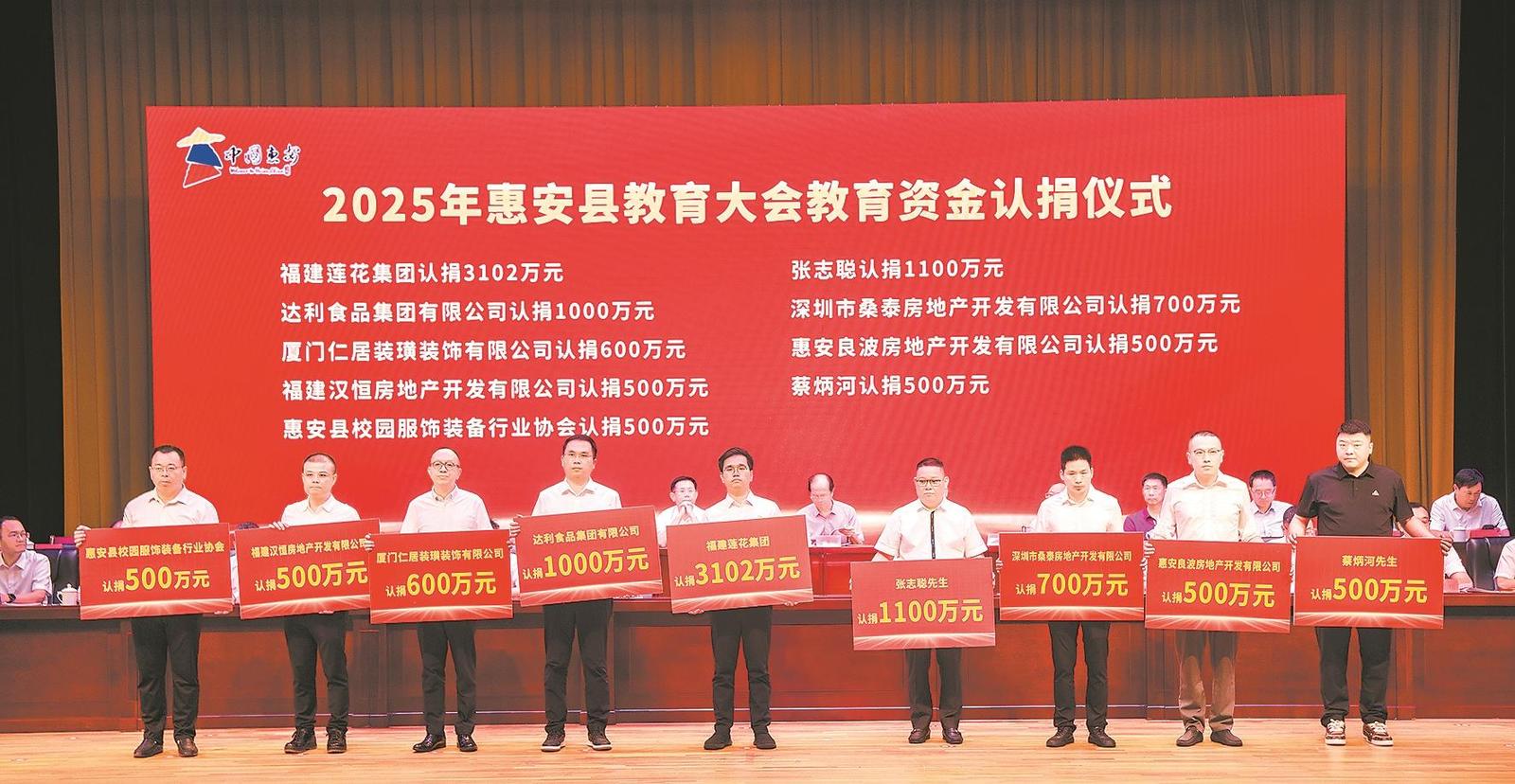 汇涓成河,同心兴教。教育大会还举行教育资金认捐环节,爱心企业家代表踊跃举牌。据统计,单笔认捐50万元及以上的单位(个人)总金额达1.31亿元;全场总认捐次数645次,累计金额约1.55亿元,以“聚沙成塔,合力兴教”的公益力量,推动教育资源优化配置再上新台阶。