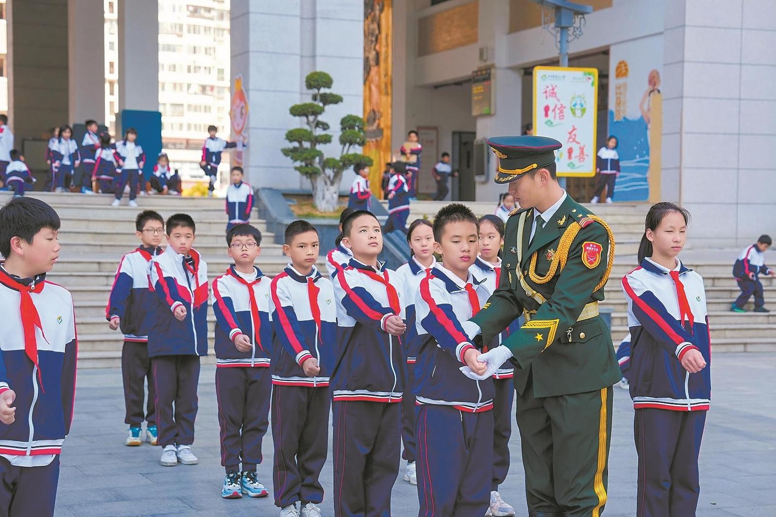 泉州晚报讯(融媒体记者陈森森 通讯员陈瑞娜 文/图)近日,由光明日报出版社、中共泉州市委宣传部、泉州市教育局主办的“同升一面旗 共话新时代”原天安门国旗护卫队进校园活动在泉州市晋光小学东海北校区举行。8名原天安门国旗护卫队队员通过庄严的升旗仪式、深刻的主题分享与专业的实操培训,带领全校师生沉浸式感受国旗荣光,厚植爱国情怀。