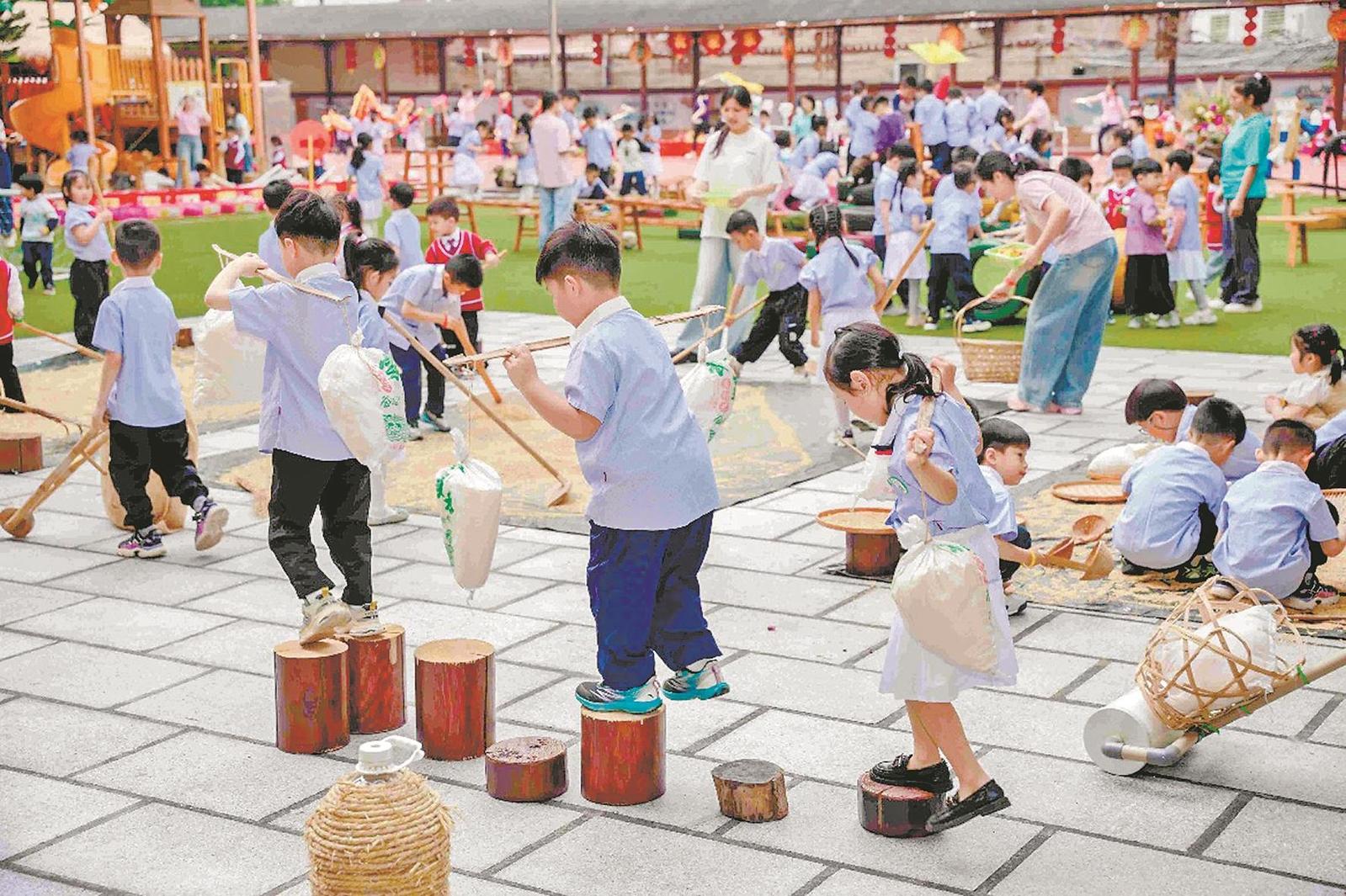 “每一个游戏现场,孩子们专注的眼神、投入的操作、自主的交流,都生动诠释了‘儿童为本’的教育理念——教师是支持者、观察者,而孩子才是游戏与学习的主人。”园长黄世清介绍,学园根植乡土,致力于优秀本土文化的传承与创新,构建富有特色的“乡悦”课程,打造“儿童开心的乐园、教师舒心的家园、家长放心的学园”。
