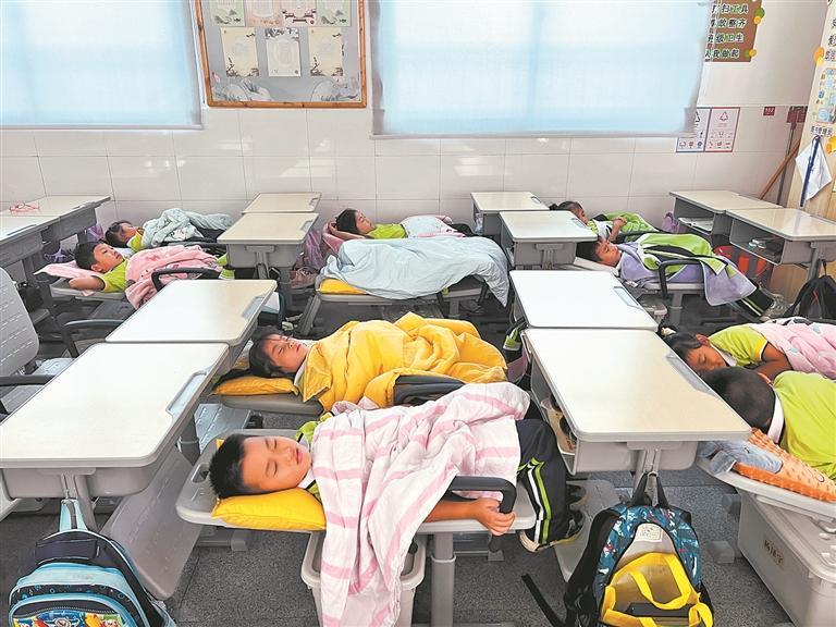 丰泽区东星实验小学提供平躺睡课桌椅,安排1小时午休时光。