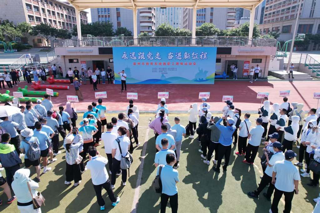 2025年5月13日,由泉州市教育局、泉州市教育工会主办的2025年全市教育系统教职工趣味运动会在泉州第一中学东海校区和丰泽区蟳埔民俗文化村—真武庙双会场顺利举行,来自各县(市、区)教育工会和市直(属)学校共24支代表队、240名教职工同场竞技。