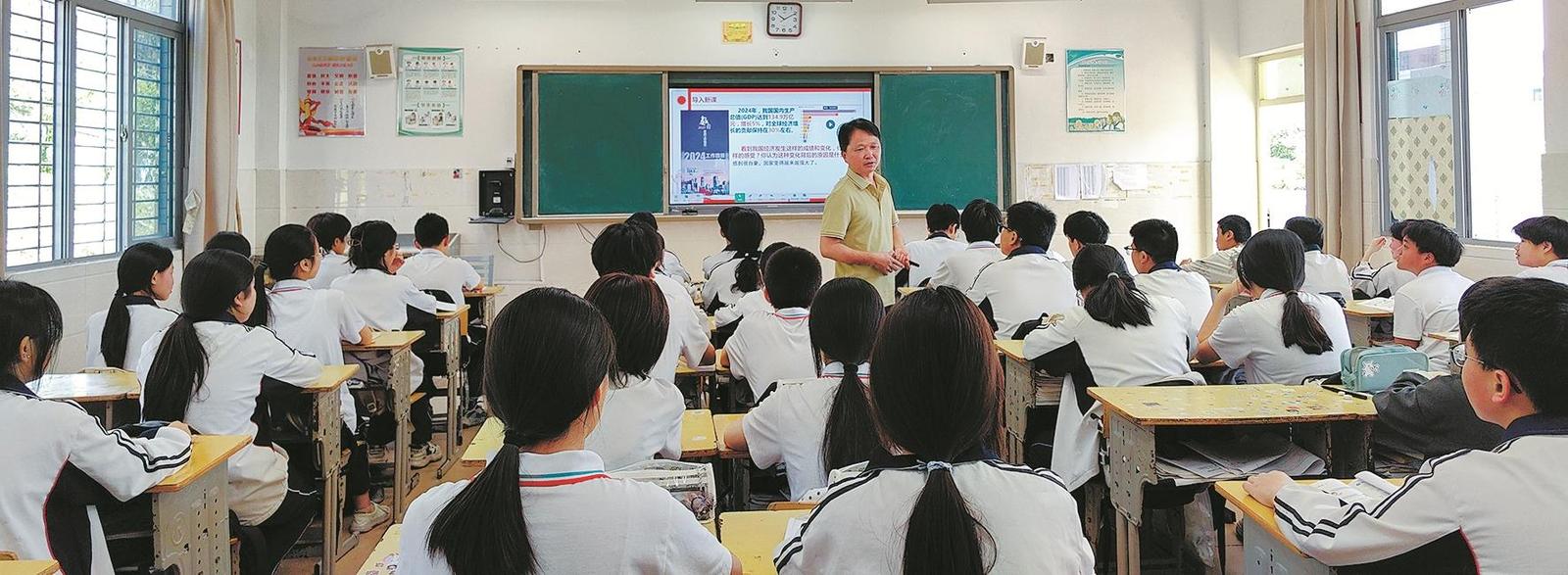 初中“新优校”培育校永春八中的道德与法治学科课堂上,教师引领学生深度学习。