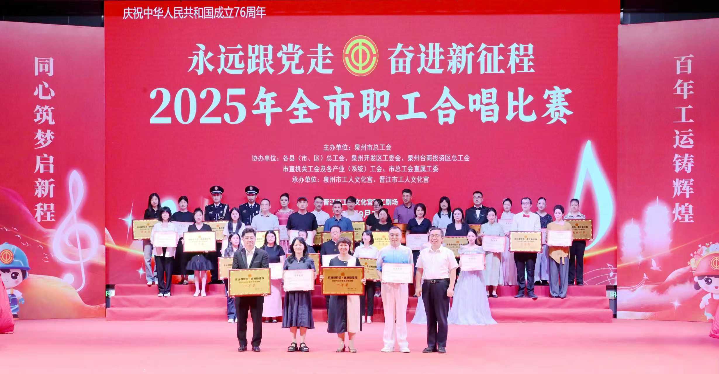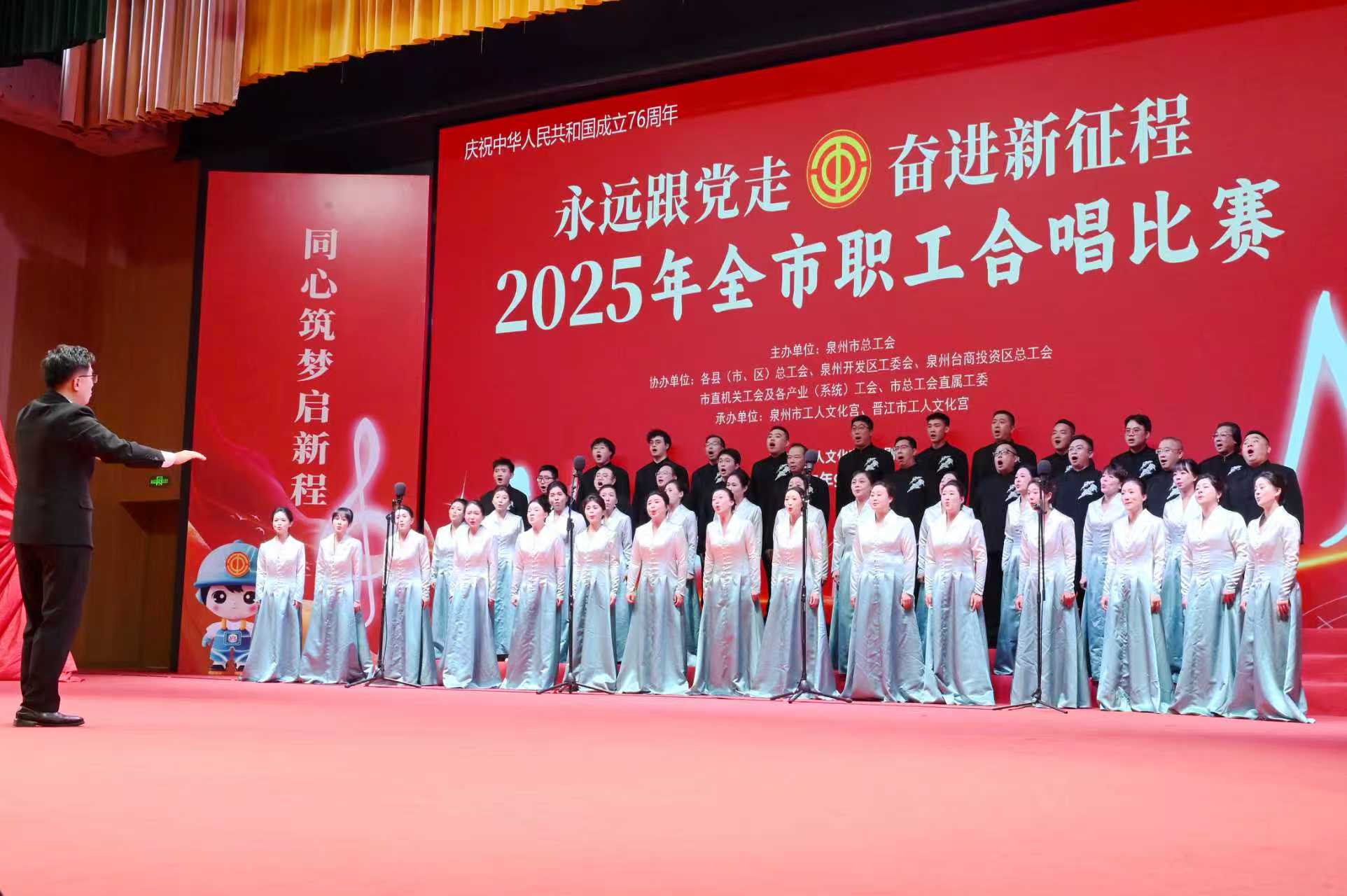 9月26日,由泉州市总工会主办的“永远跟党走 奋进新征程”2025年全市职工合唱比赛在晋江工人文化宫举行,全市19支代表队参加。泉州市教育系统代表队由泉州市教育局领导带队,全市高校、中小学、幼儿园教师代表联合组建,大家以饱满的热情登台献唱,展现出教育工作者们的良好精神风貌。