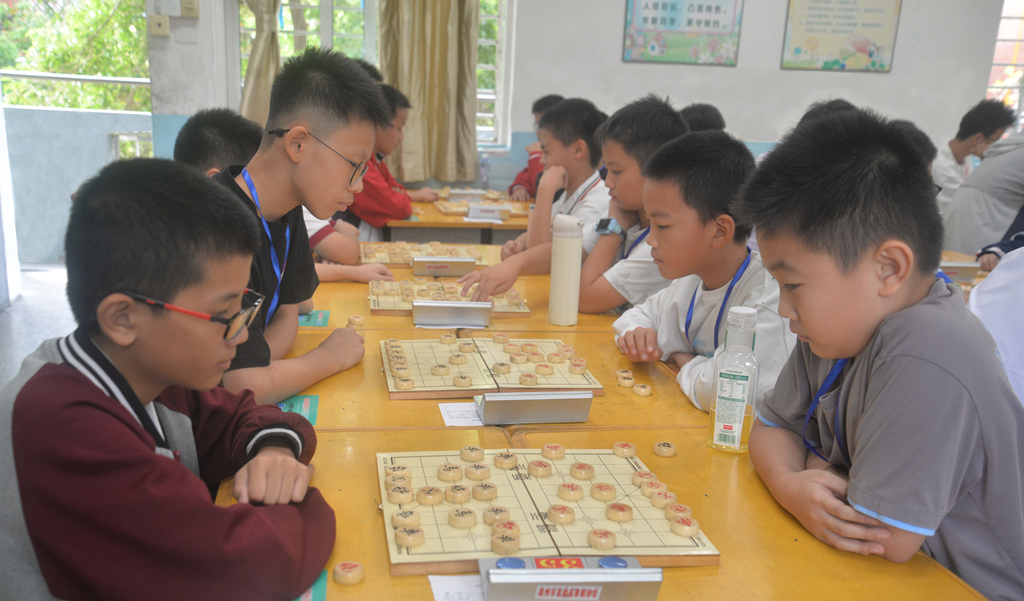 本次比赛分中学男子组、中学女子组、小学男子高年级组、小学女子高年级组、小学男子中年级组、小学女子中年级组、小学男子低年级组、小学女子低年级组等8个组别,采用国家体育总局审定的《象棋竞赛规则》,经过5轮积分循环赛,最终决出名次。赛场上,小棋手们静坐对弈,或凝神思考布局,或果断落子攻防,棋盘间楚河汉界分明,车马炮交错纵横,展现出超越年龄的沉稳与谋略。不少低年级选手虽稚气未脱,却能熟练运用“弃车保帅”“马后炮”等经典战术,引得场边观赛师生阵阵赞叹。