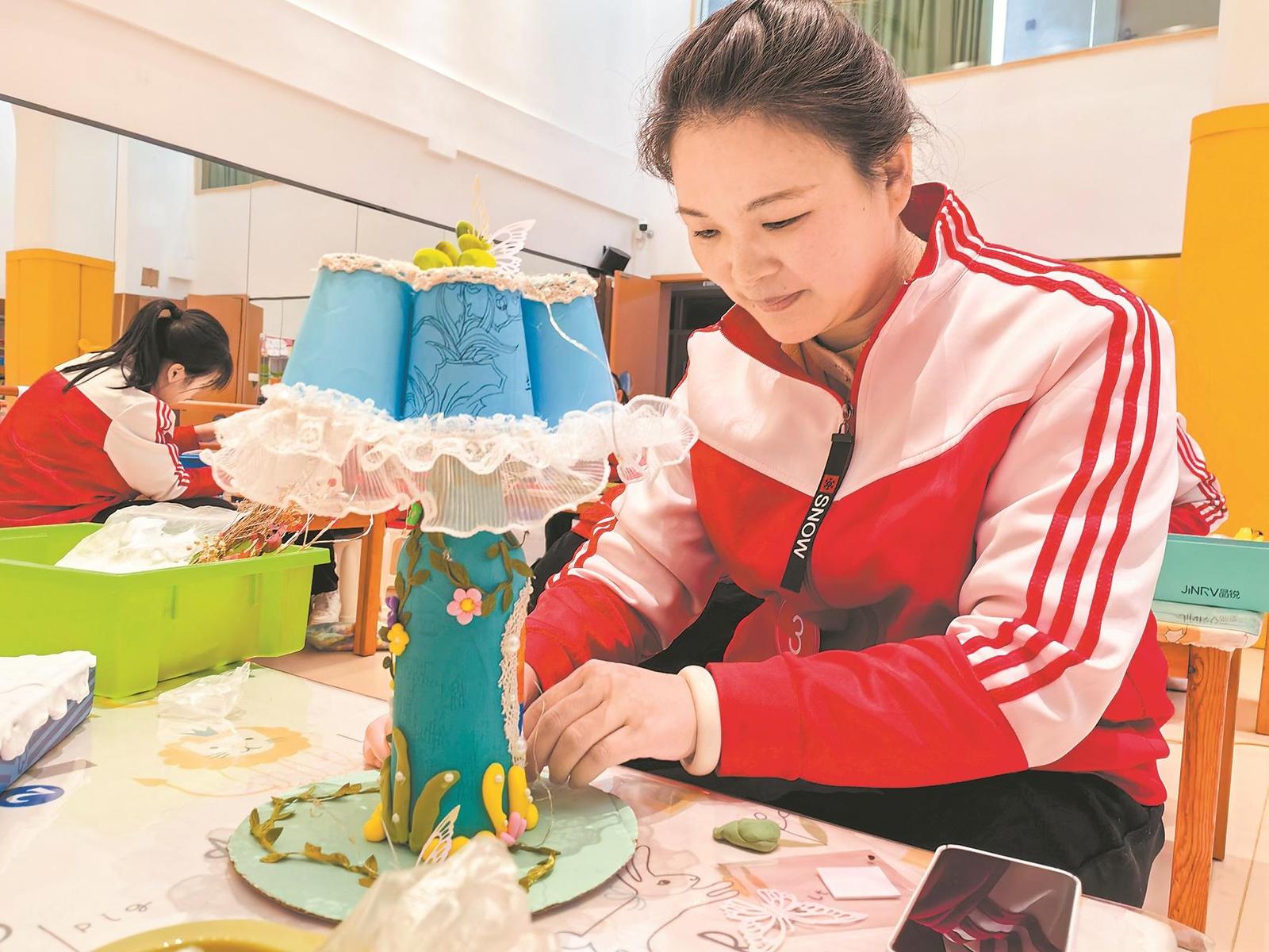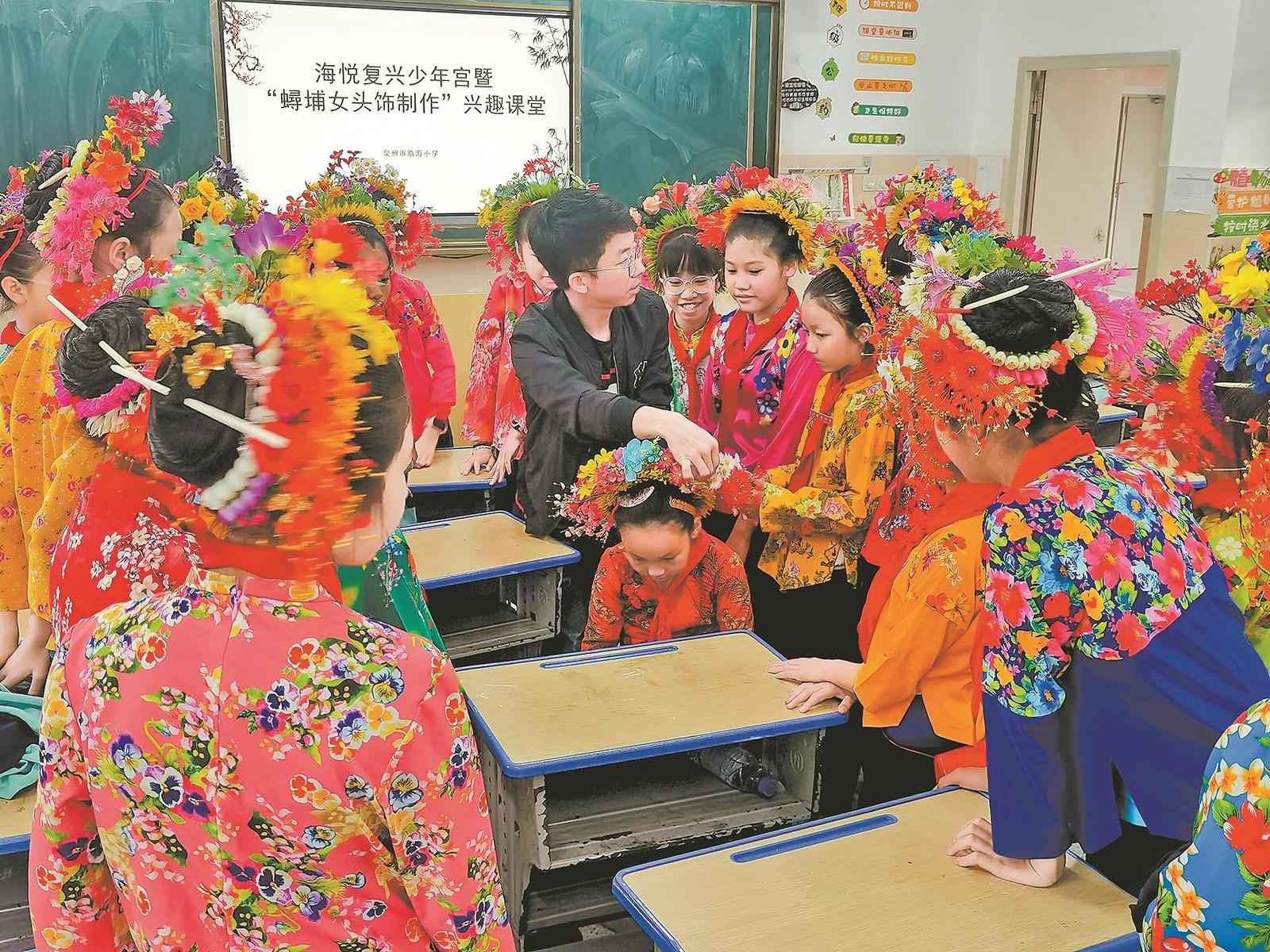 小学的蟳埔女头饰制作课堂