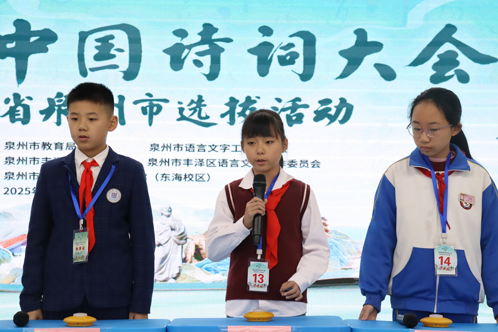 这不仅是一场知识的较量,更是一场诗意的奔赴 。从“刺桐花下客”到“海丝起点城”,千年文脉在少年吟诵中薪火相传。比赛现场气氛热烈,既有紧张激烈的角逐,也有默契交融的共鸣,充分彰显了泉州作为 历史文化名城 的人文底蕴与教育活力。