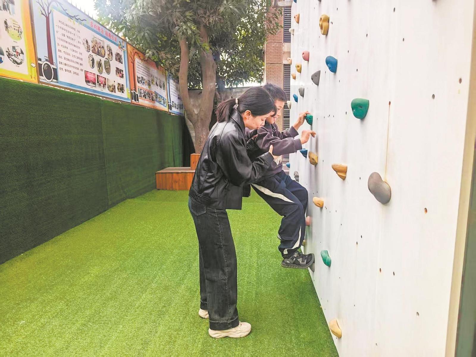 走进晋江市特殊教育学校,“阳光”理念渗透校园每个角落。“七色光”文化展示窗里闪烁着学生的创意,“植趣园”中孩子们正低头观察植物生长,“向日葵家园”内传来轻松愉快的互动声……校内一景一物被设计为“浸润式环境课程”的一部分,主题式文化景观,搭配感统、音乐、美术、个训、蒙氏等功能教室,织就安全且充满支持的“悦融”生态,帮助孤独症学生舒缓焦虑情绪、安心学习。学校同步搭建起覆盖夯实基础的学科课程、兼顾康复与兴趣的支持课程、渗透技能认知的职业启蒙课等六大模块的“阳光课程体系”,推动教康融合,为学生撑起全方位成长支持生态。