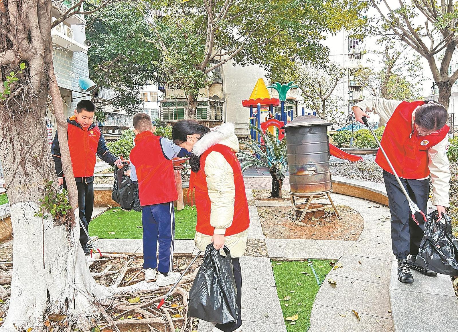 少先队员代表和党员教师代表到社区参与志愿者服务活动
