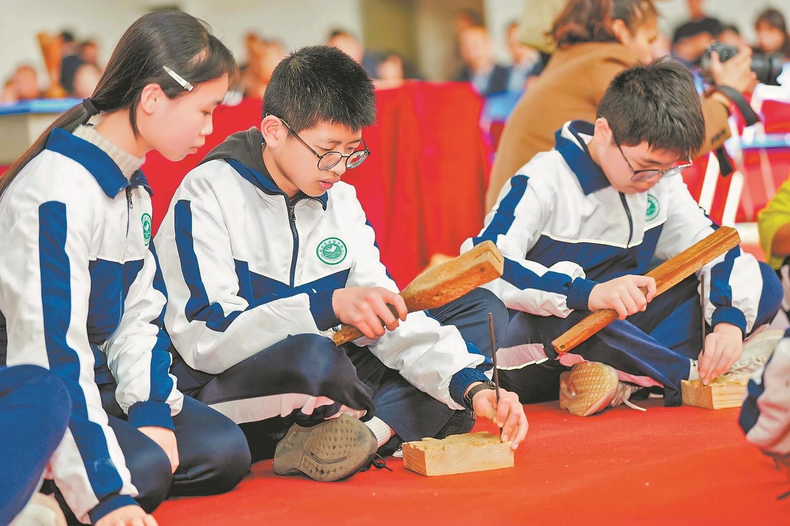 学生们正在学习书刻艺术